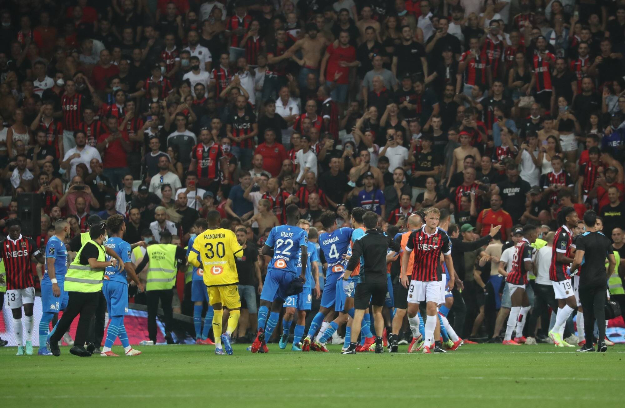 The incident began in the 75th minute when the player of om dimitri payet returned to the nice supporters' stand one of the many plastic bottles he received every time he went for a corner.